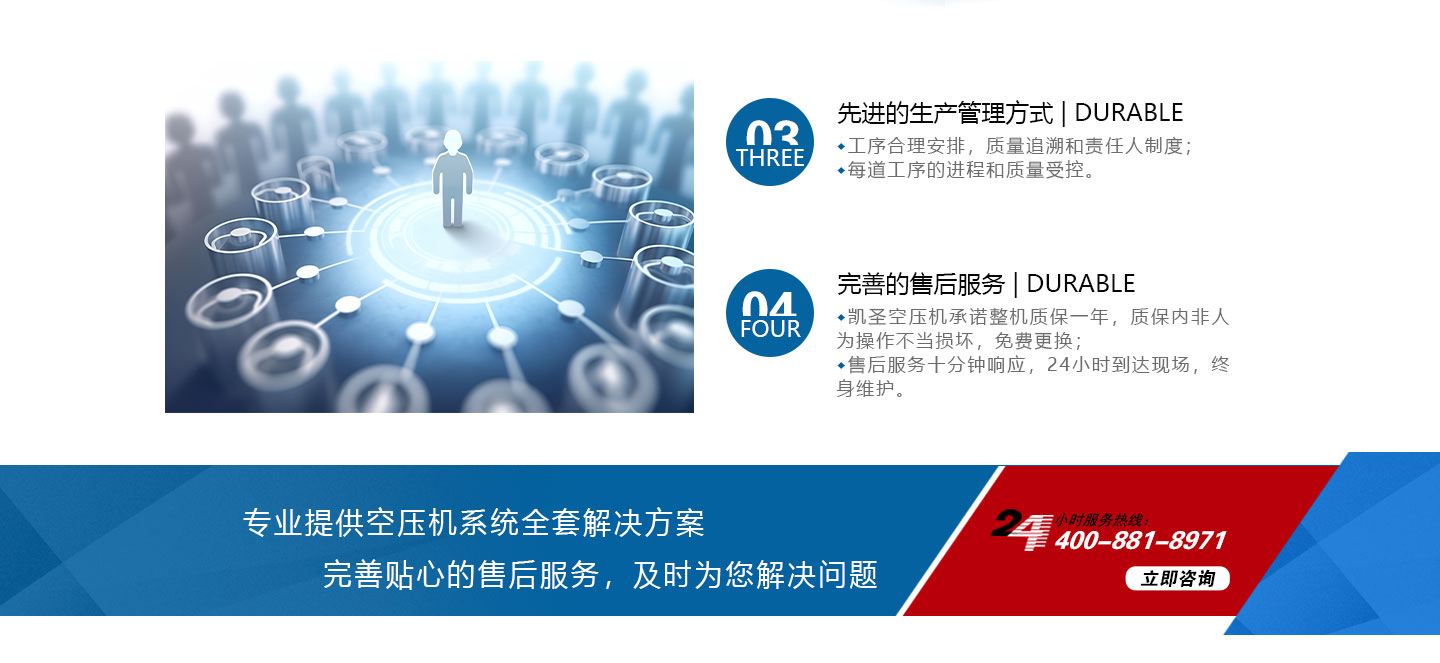 合肥凱圣節(jié)能科技有限公司是從事永磁變頻螺桿壓縮機系統的設計、制造、安裝、調試、維修與一體的公司。 在多年的螺桿空壓機研發(fā)與推廣歷程里,凱圣聚集和培養(yǎng)了大量壓縮機技術設計和管理人員,迅速發(fā)展成為集研究、生產、銷售、服務等環(huán)節(jié)為一體、嚴格按照標準執(zhí)行的企業(yè),公司成立開始,即以滿足客戶的實際需求為己任,大力開拓國內外節(jié)能型空壓機市場,并始終保持創(chuàng)新精神,全力研發(fā)更為節(jié)能的螺桿式空壓機,努力站在空壓機節(jié)能領域的排頭位置。 應用范圍:公司產品廣泛應用于機械、輕工、紡織、食品、石油、化工、冶金、礦山、電力、城建、醫(yī)學研究和科研等各行業(yè)中,將為節(jié)約能源做出巨大貢獻。公司秉承“信譽至上,...